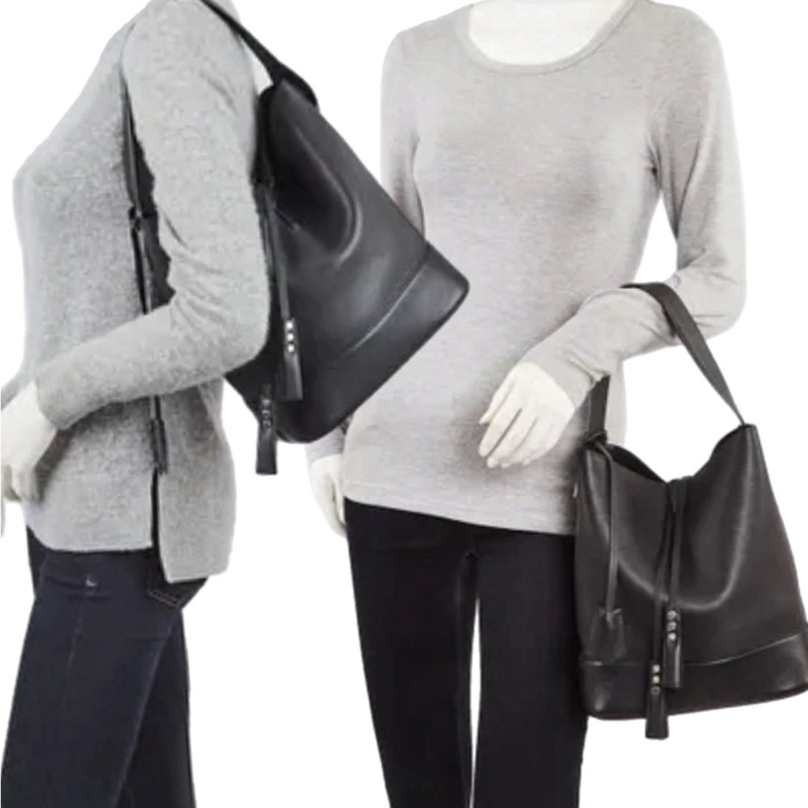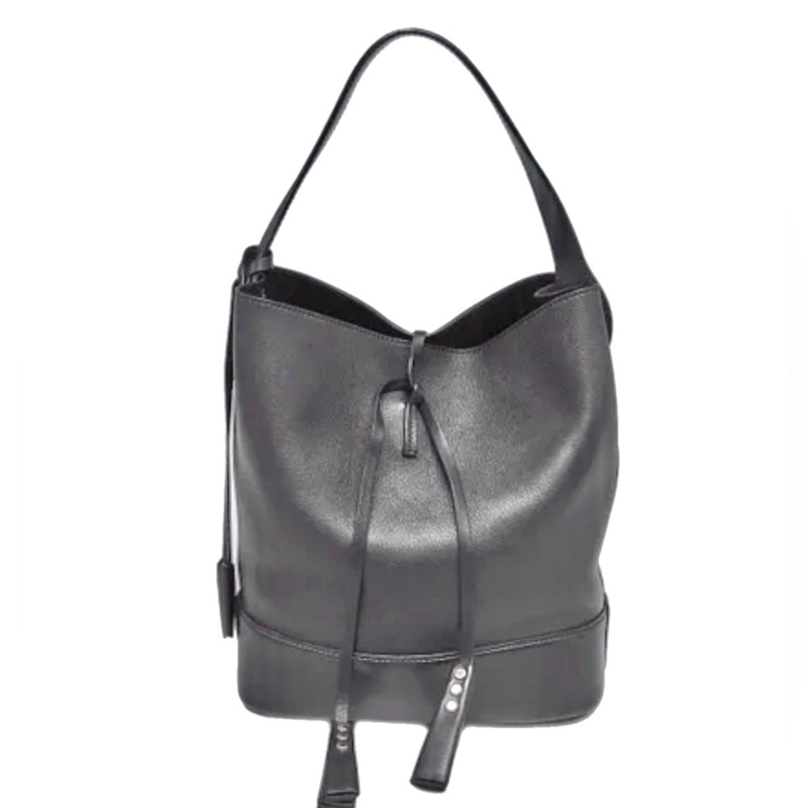 The exterior leather is clean and beautiful with only a few minor scuff marks at the base. The leather tie straps have a few scratch marks visible on a close inspection. The shoulder strap has a few scuff marks. The silvertone hardware is bright with some scratches. Tassel hardware with some peeling. The interior has several scuff marks and rubbing, and branding at bottom has worn off. No odor… still in great condition.