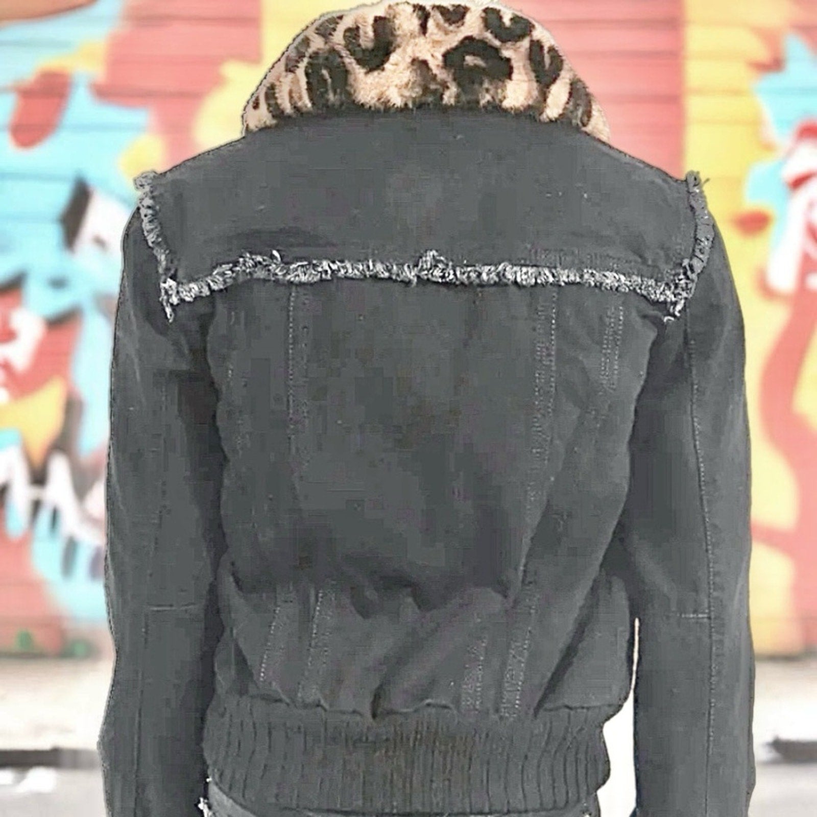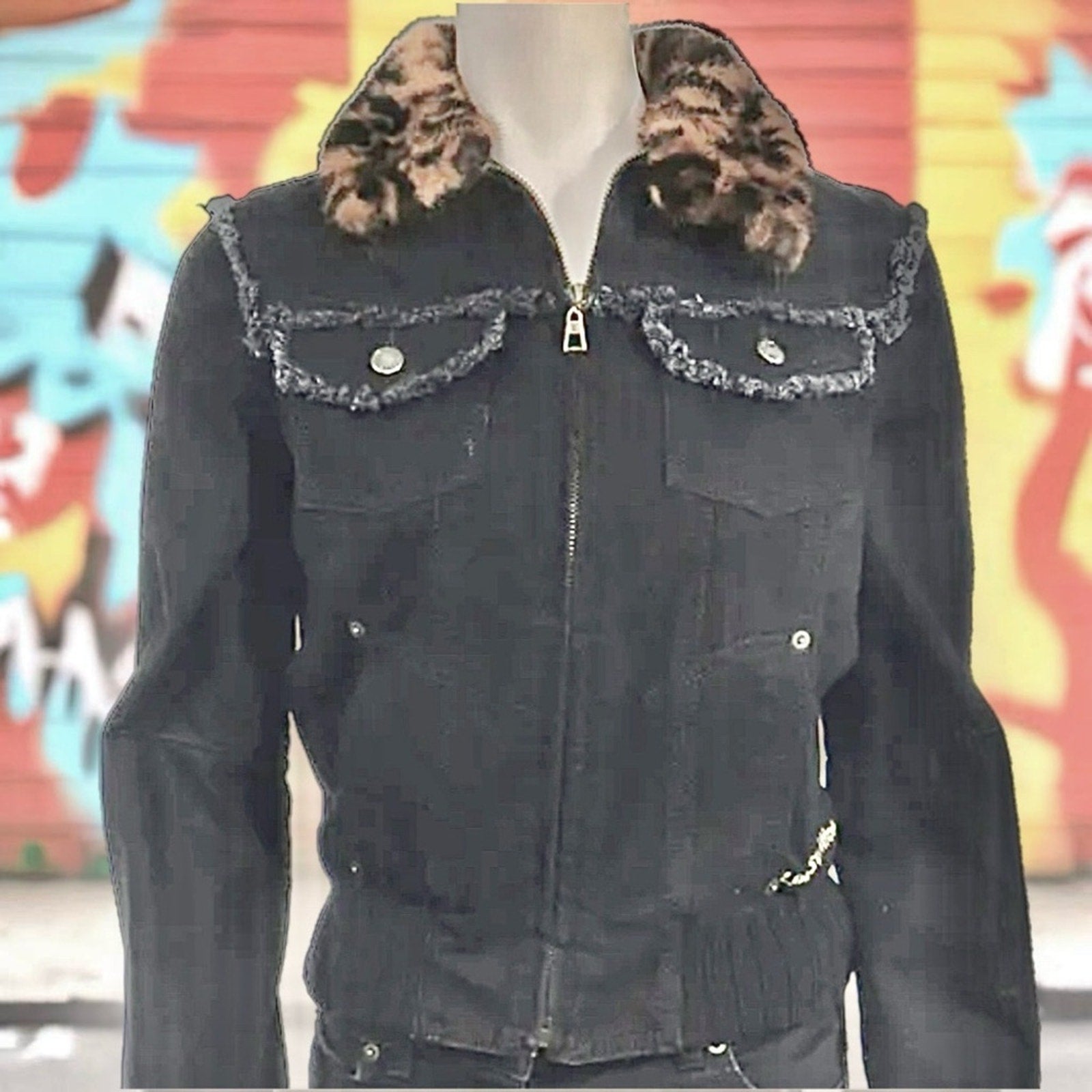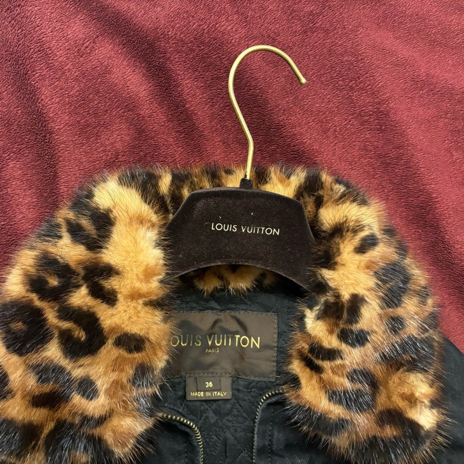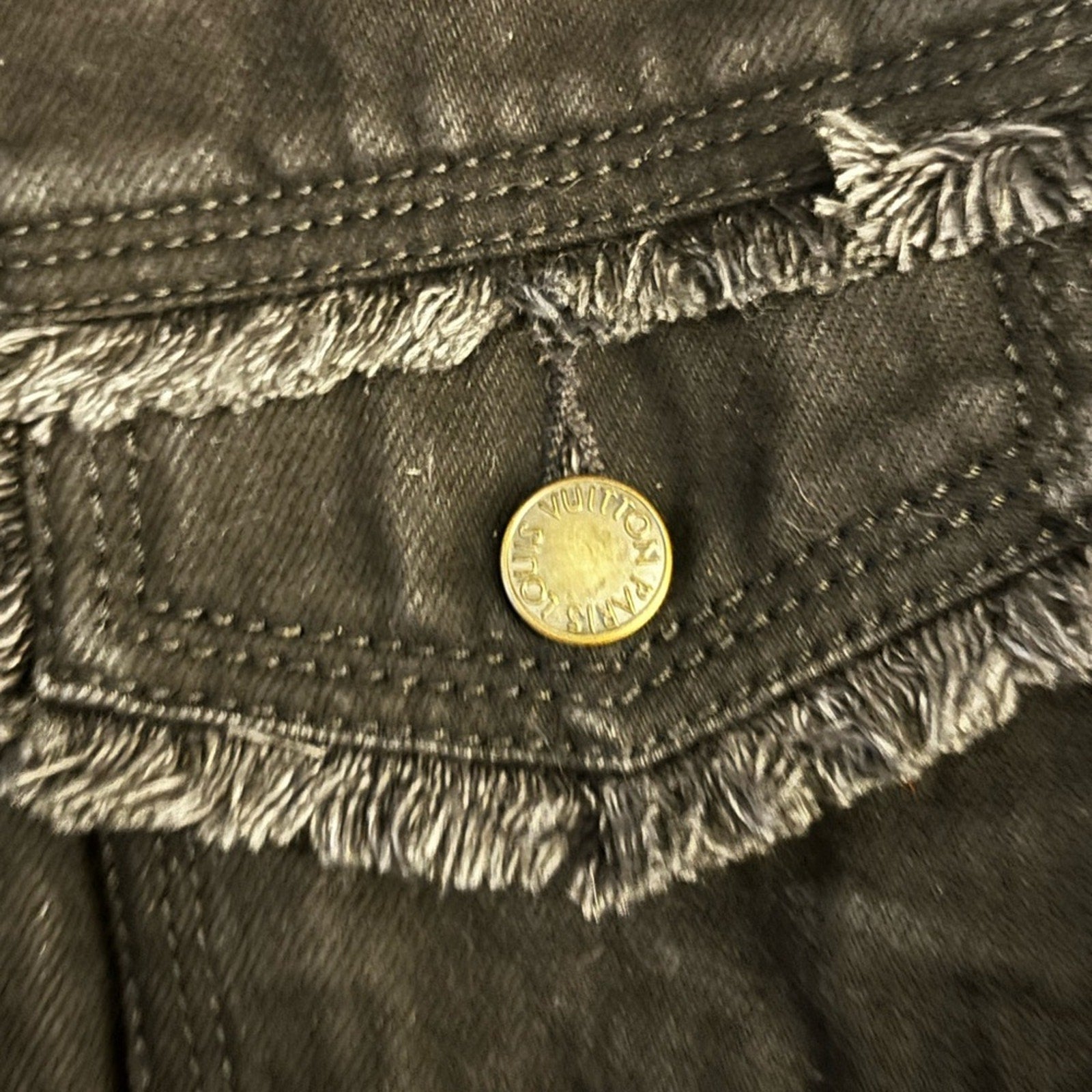 This iconic jacket combines edgy sophistication with luxurious details. Crafted from black-washed denim with distressed frayed trim, it features a detachable mink fur collar for added flair. Functional and stylish, it has quilted interior lining, gold-tone buttons, and subtle ‘LOUIS VUITTON’ accents.