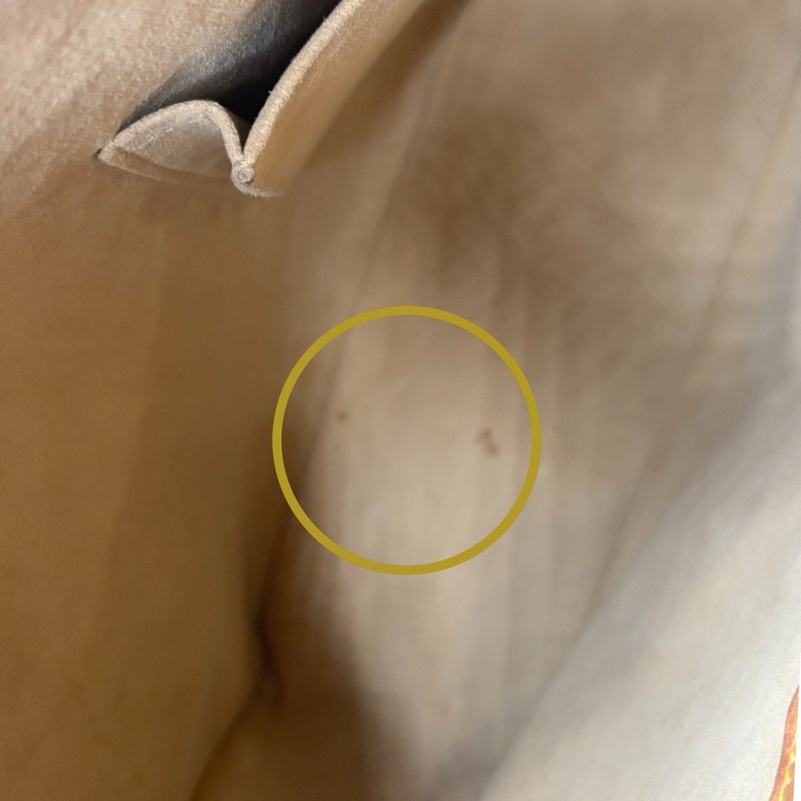 Interior: minor rubbing around inside zipper line, clean interior except for to small stains at bottom , no holes, no odor.