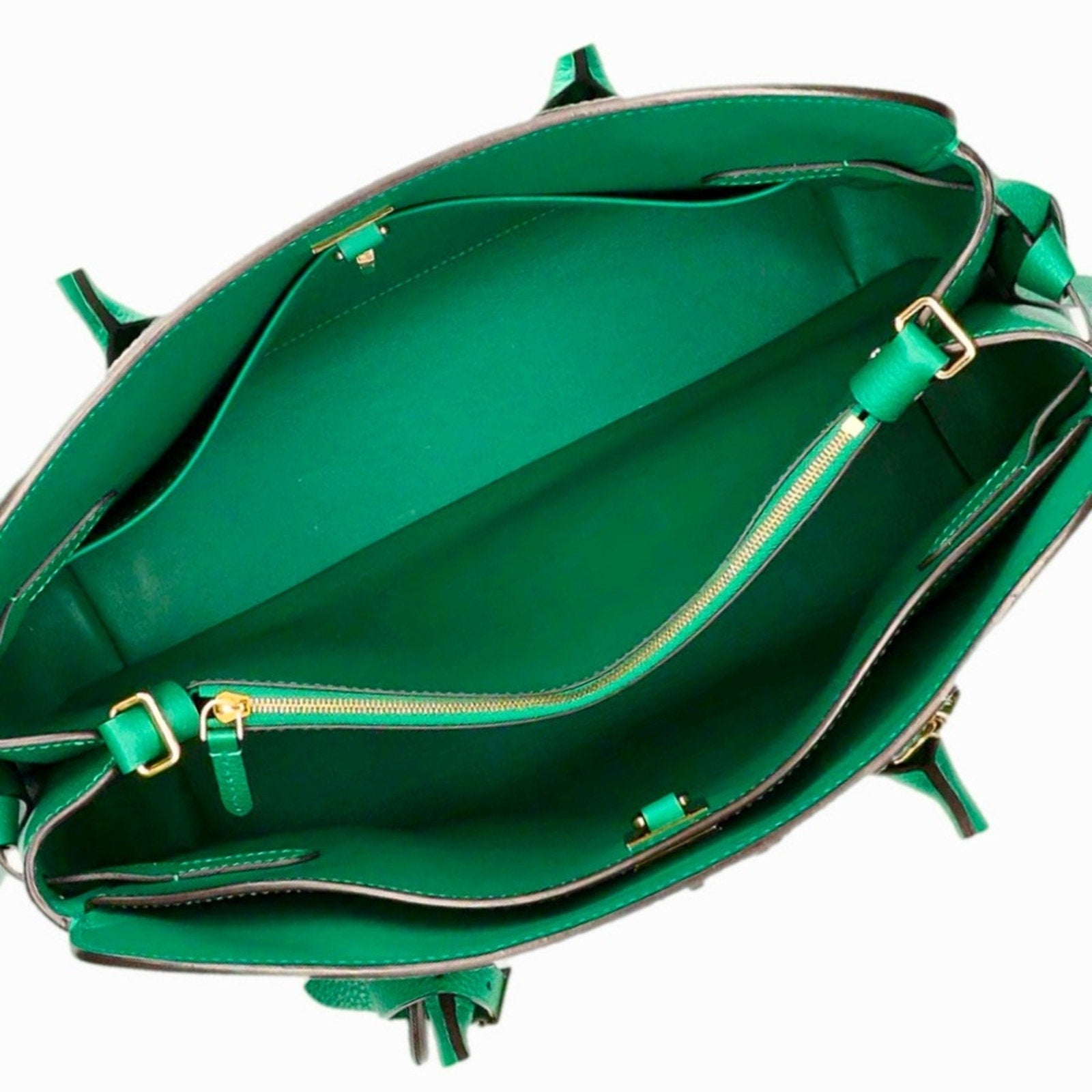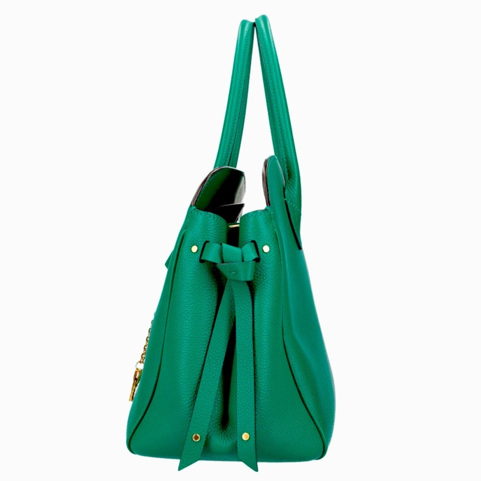 The Nuage Milla MM in Emeraude is pure luxury and elegance. Crafted from soft grained calfskin leather in a breathtaking emerald green. Features rolled leather top handles, delicate side knots, and gleaming gold logo rivets, exuding timeless refinement. The front comes with a padlock turn-lock closure, complemented by a hanging clochette and key, while the interior is lined with buttery smooth lining, offering impeccable organization with zippered and patch pockets. this stunning handbag is in pristine condition, destined to captivate and command admiration wherever it goes.