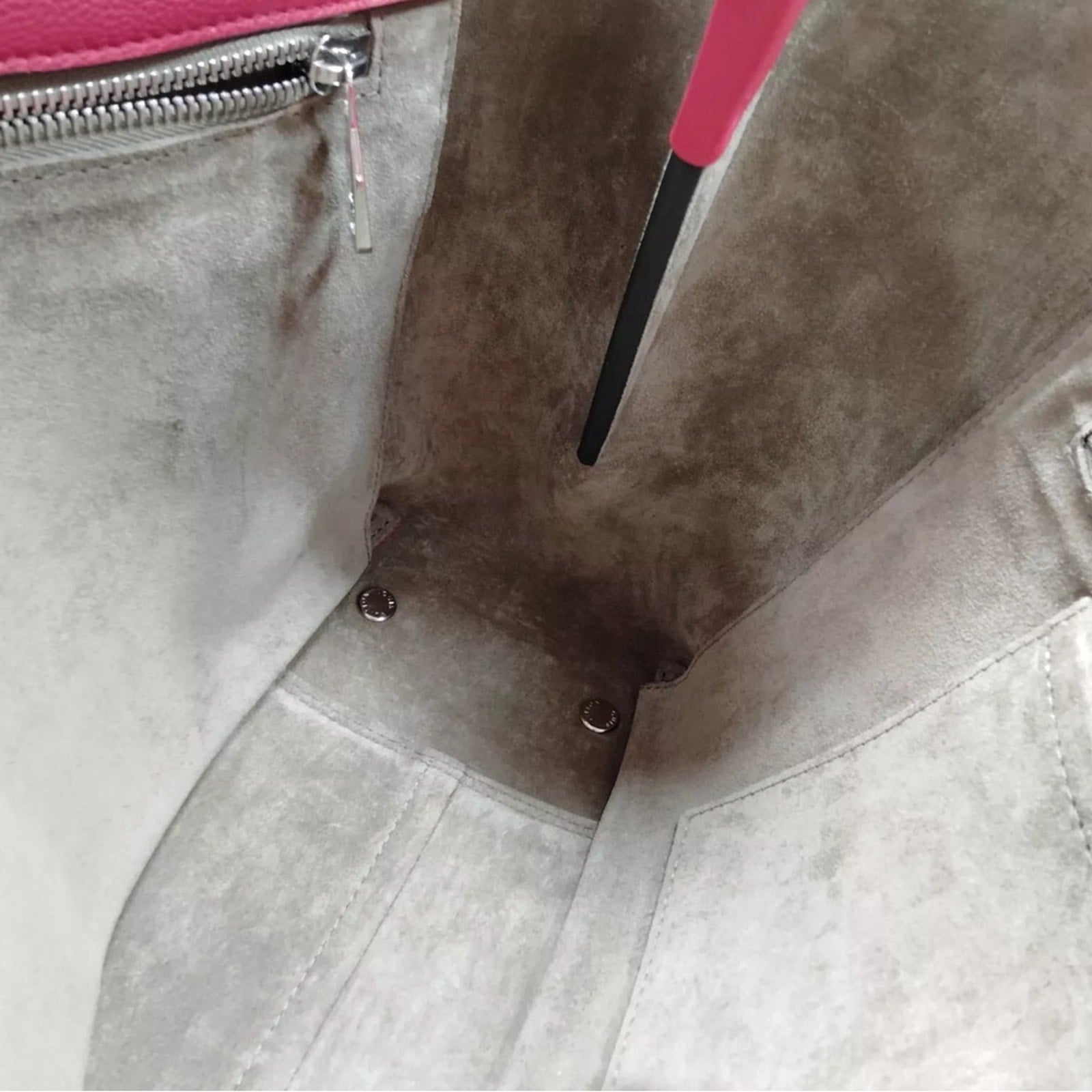 Origin: France Production Year: 2014 Date/Authenticity Code: FL2174 Measurements: 13.5" L (at base) x 5"W x 10.5"H Handles: Double rolled Box leather handles Handle Drop: 5" Closure/Opening: Leather covered magnet and clasp ban hook closure Interior Lining: Suede Hardware: Silvertone with minor hairline scratches.